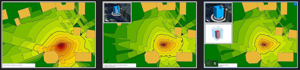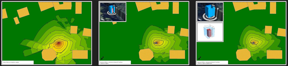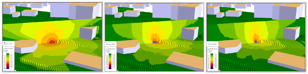 Infine per valutare l’andamento del fronte d’onda in verticale abbiamo realizzato delle mappe in 3D con sezioni di altezza 20 m, nella situazione di impianto a regime per i tre scenari sopra illustrati.