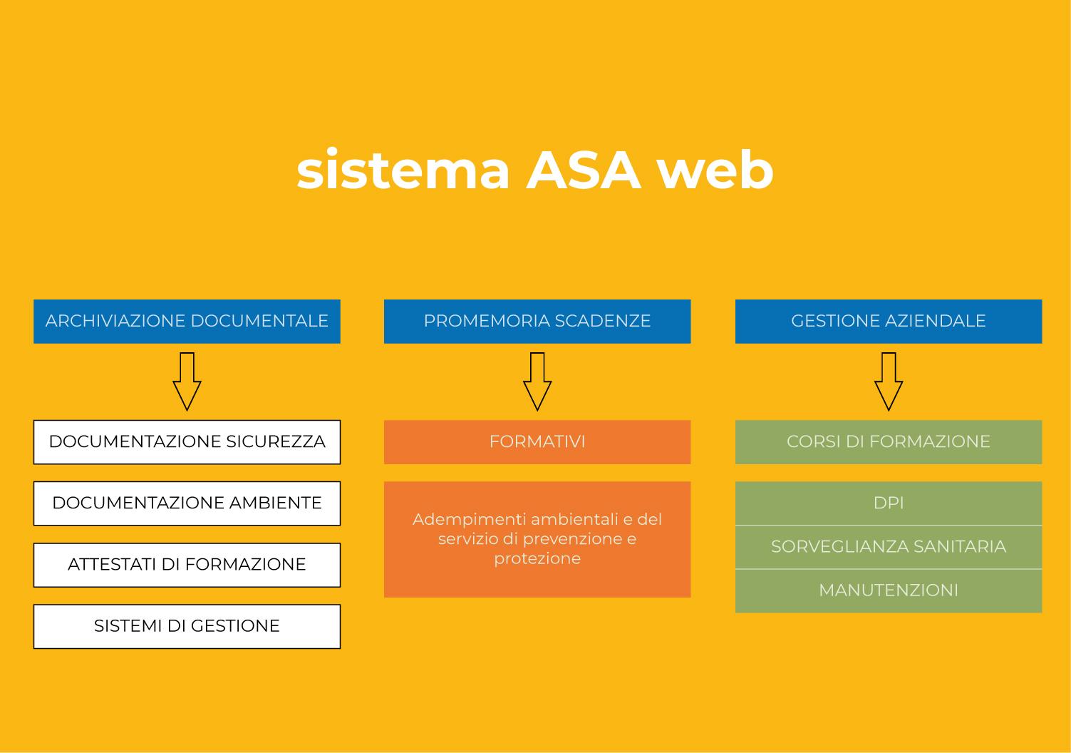 Sistema ASA web è il servizio cloud di ASA servizi S.r.l. che consente alla vostra organizzazione aziendale una facile, accurata e completa gestione delle attività e degli adempimenti in materia di salute e sicurezza, di ambiente e delle attività correlate.